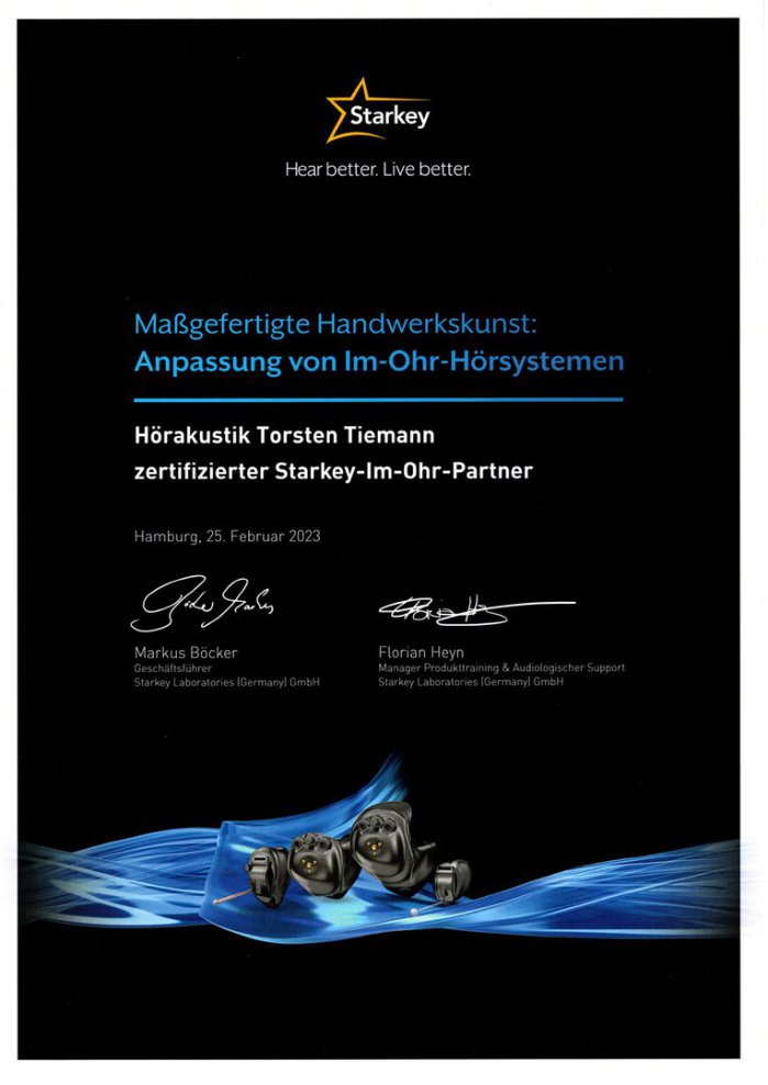 Die Firma Starkey hat uns als Starkey Im-Ohr-Partner ausgezeichnet.